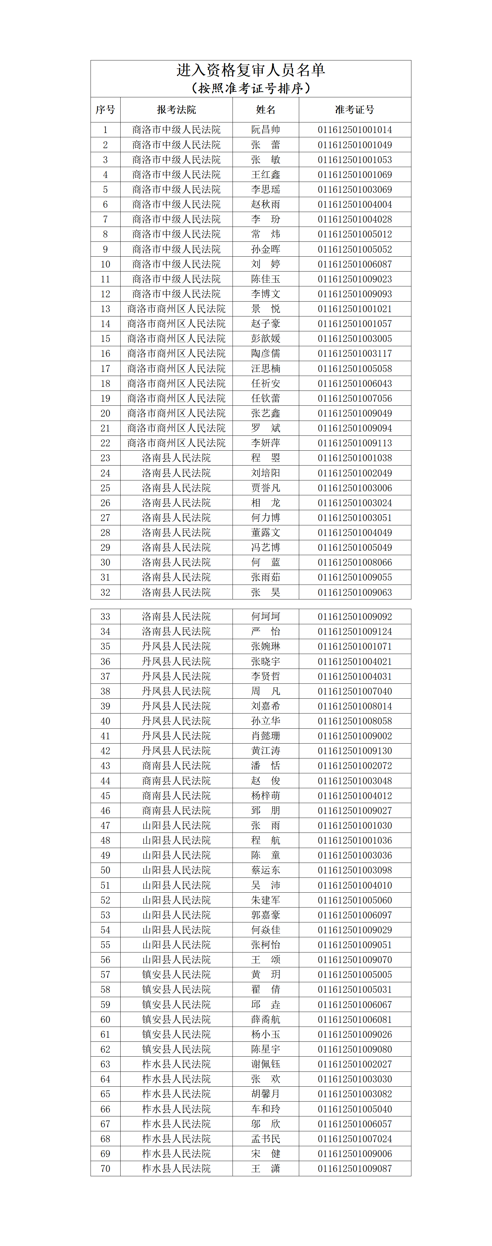 參加資格復(fù)審人員以所報(bào)考法院的考生綜合成績(jī)排名及招聘計(jì)劃2倍的比例,由高到低確定(進(jìn)入資格復(fù)審人員名單詳見附件)。
